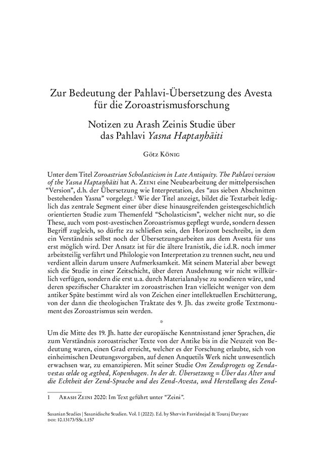 Zur Bedeutung der Pahlavi-Übersetzung des Avesta für die Zoroastrismusforschung. Notizen zu Arash Zeinis Studie über das Pahlavi Yasna Haptaŋhāiti